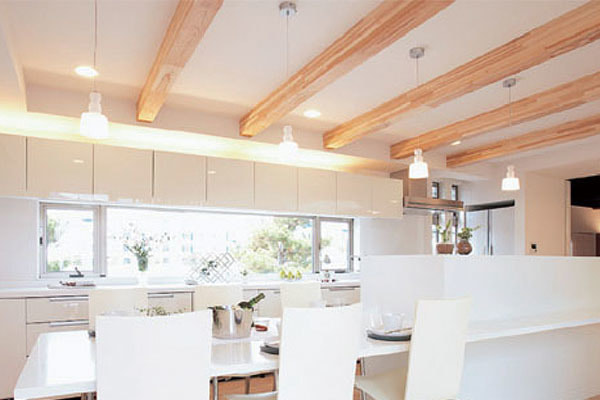 - 真壁と同時に室内のあらわし梁や小屋束にも設計施工可能になりました。3面以上露出する梁の場合は120×120mm以上または105×150mm以上のサイズが必要になります。